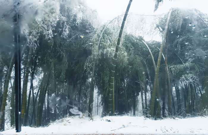 翌日清晨,说时雪停,却又落,雾渐散,古刹若现,亦真亦幻,疾呼家人来观。