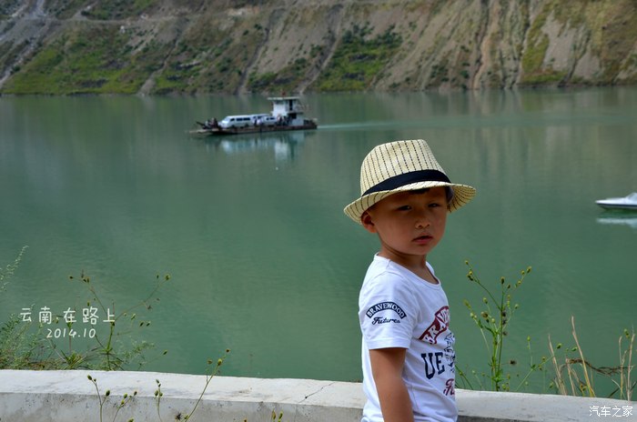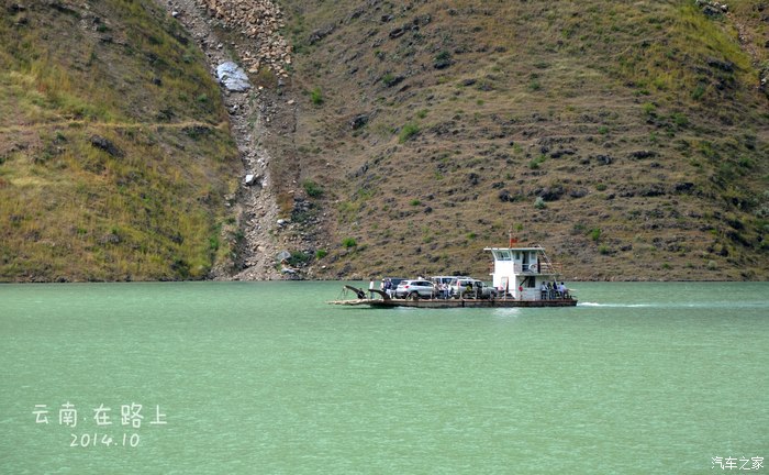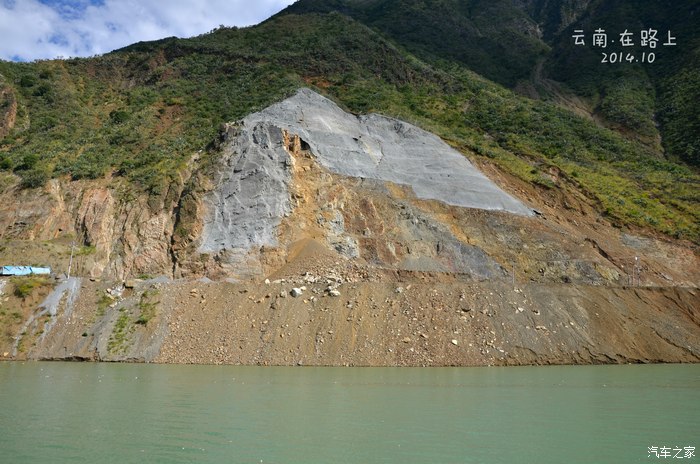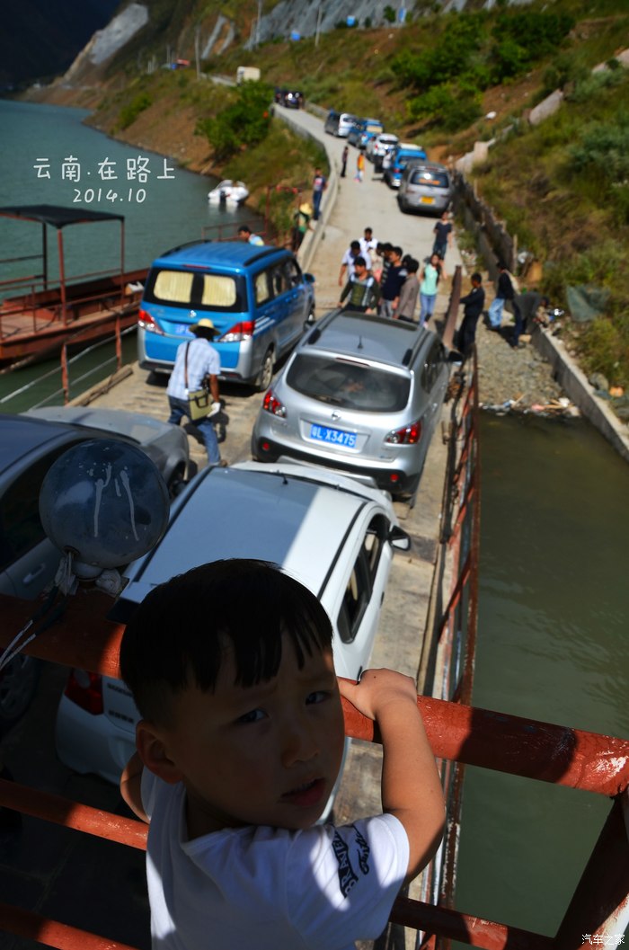 就在阿海电站前面没有多山体滑坡。不能通行,要从江面上过渡,只有一条船,一次四台车,来回半个小时左右。前面这么多的车,让我三个人顶着强紫外线的太阳等了两三个小时。