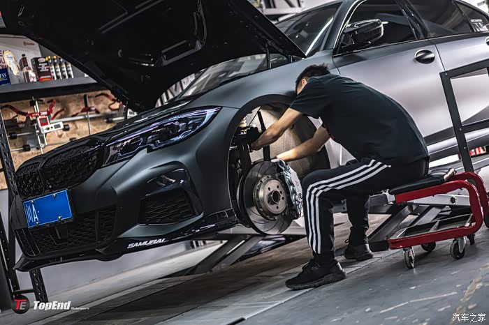 改装绕不开的三大件,改一个跟着就会联动起来,银色的卡钳配黑色还是非常有质感的