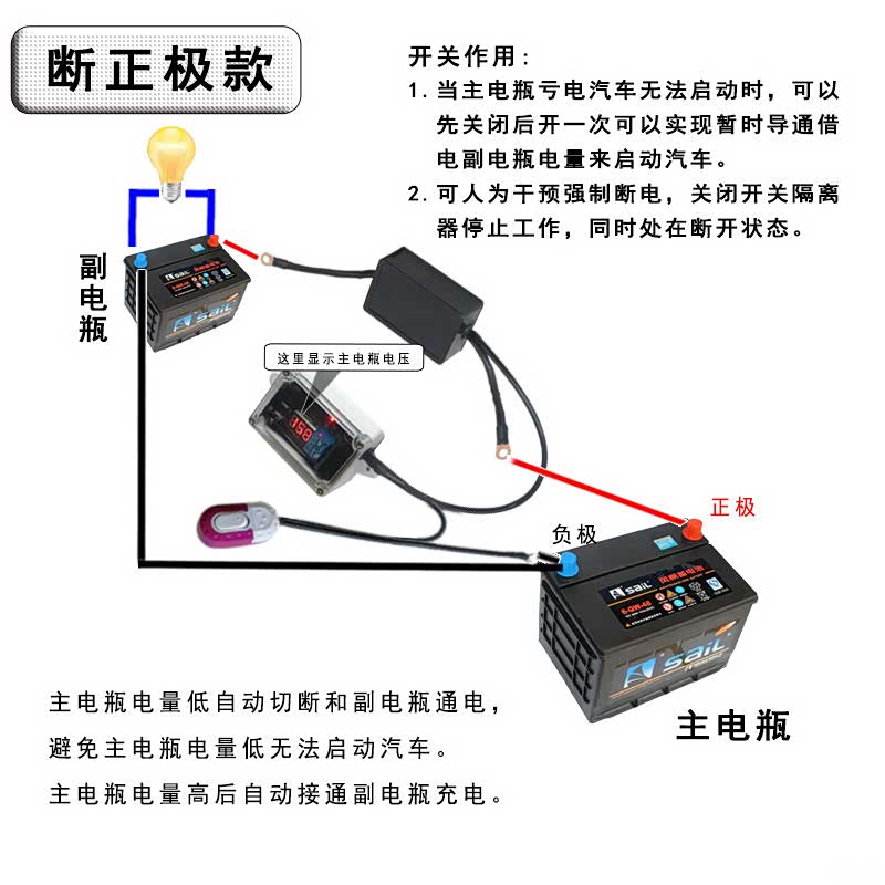 线接好,座椅安装复位。主副电瓶一定要加双电瓶隔离器,确保主电瓶不亏电。
