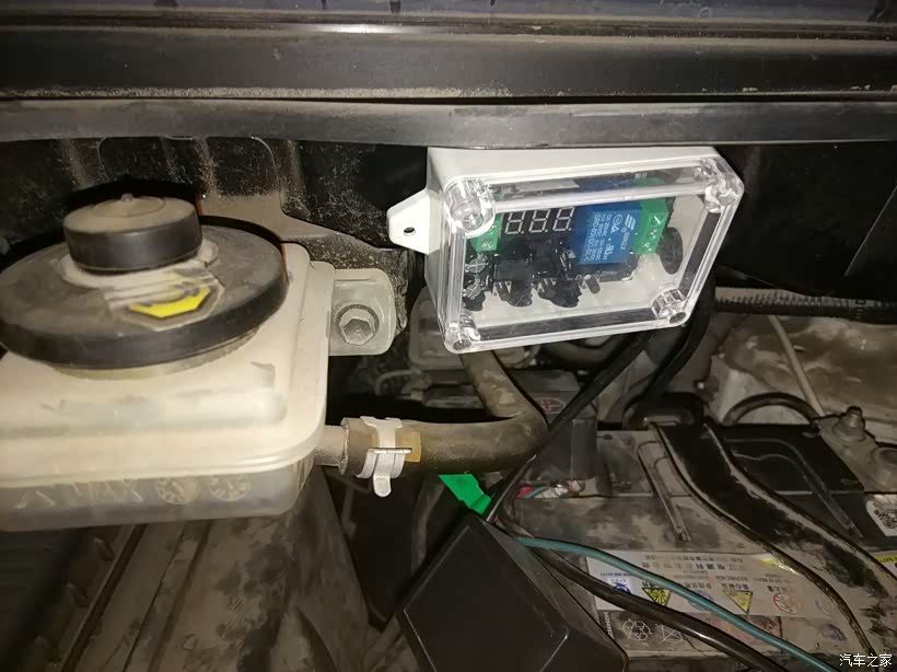 220v逆变器由于有风扇,工作时噪音,所以也按在了引擎盖里。