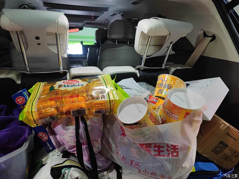 我有点发愁这么多东西后备箱能塞下吗,关键我后备箱不是空的,还有我的洗车工具和为露营准备的折叠桌椅和烧烤架。我还是低估了蓝山的后备箱能力,轻松的放下了我今天买的所有东西。 第三排甚至无需放倒,真正实现了载物不牺牲乘坐的平衡。