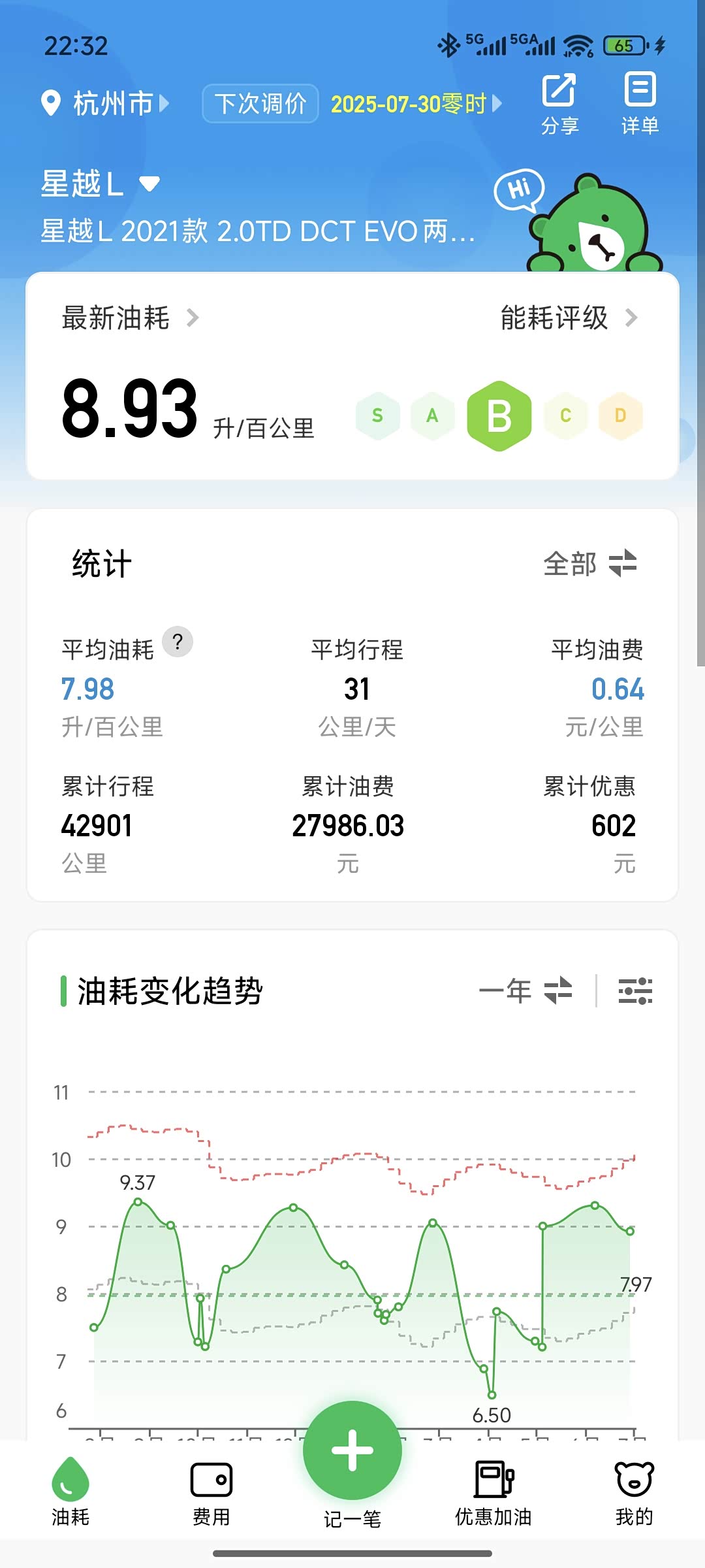 在燃油支出方面,我保持了详尽的记录,总油费支出约为 2.98万元人民币。折算下来,每公里的燃油成本基本维持在 六毛多的水平。对于星越L这样一款搭载2.0T动力、体型不小的紧凑型SUV来说,这个油耗表现我认为是相当不错的。平均下来,一年的油费开销大约在 7000多元。再加上每年固定的 3000多元的保险费用和3600元的停车费,我一年在车辆上的核心使用成本(油费+保险)可以控制在 一万四千元左右。这对于工薪阶层家庭来说,是一个非常清晰且可承受的预算范围。