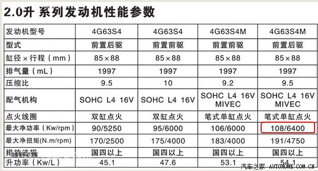 这是三菱官网的数据。很多人看到s4m,都觉得眼熟,了解h6的,应该知道这个发动机。这点不得不佩服日本人,我等会放证据,用s4m忽悠长城。其实那个发动机就是s4,h6那个s4m没有mivec技术,很奇怪吧。还有一个最大净功率可以佐证,90kw。我上图