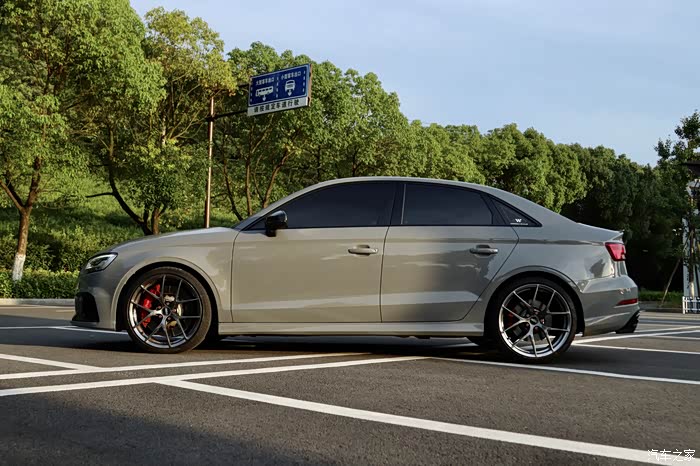 RS3和RS6一样前后轮都被稍微拉出来一些,所谓的“原厂宽体”;宽体的一加,使得整辆车升华起来,小钢炮非它莫属。整体的加宽,让整个车身不再单调,这一改变使得整辆车从各个角度看去更加稳重。