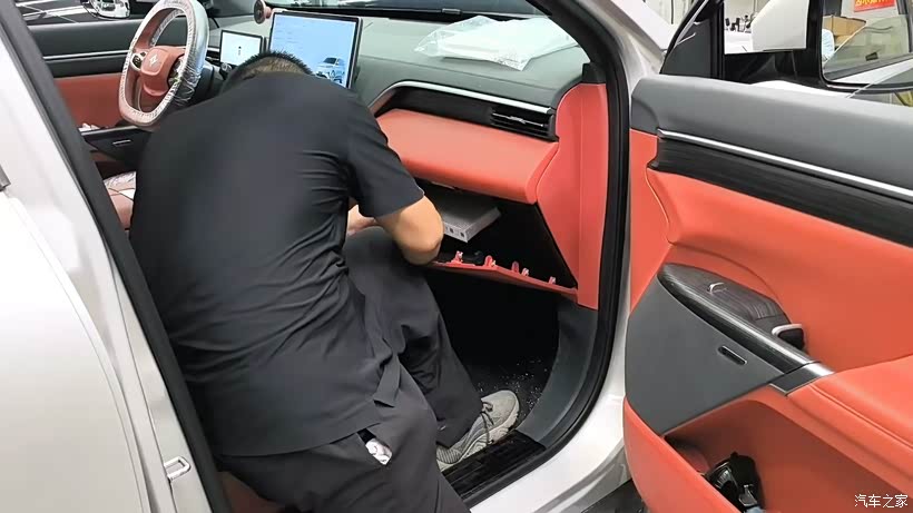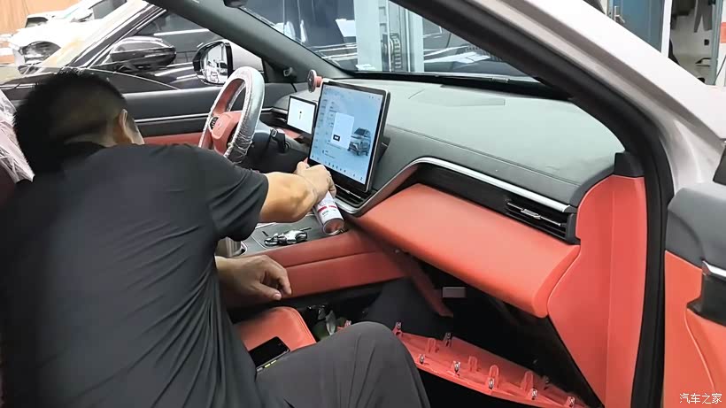 接下来就是我最关心的异响问题处理。师傅早已提前准备好了全新的香氛机配件,熟练地拆开中控台侧面的装饰板,将旧的香氛机拆卸下来,更换上新的原厂配件,安装完成后启动车辆测试,之前冷车开门时的“咔哒咔哒”声彻底消失了。对于二排扶手的异响,师傅说第一批车大多存在这个问题,更换后也不见得能完全消除,不过还是给更换了全新的二排扶手,再次测试时异响明显减轻。