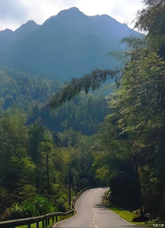 从温汤镇出发,按导航走是22公里。走通向#宜春#市区的明月大道5公里后,转入531省道。上面画面就是省道,黑亮、平坦、细腻,两侧山峦起伏,满目青翠,风景极佳