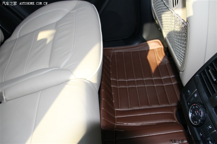 内部杏仁米色真皮座椅配棕色五福金牛如意牛脚垫。哈曼音响,桃木真皮方向盘,桃木内饰,变道盲区辅助。