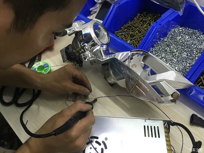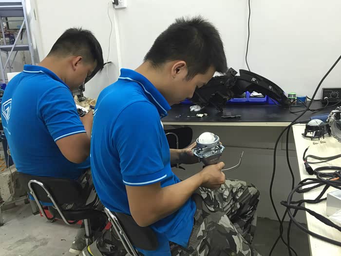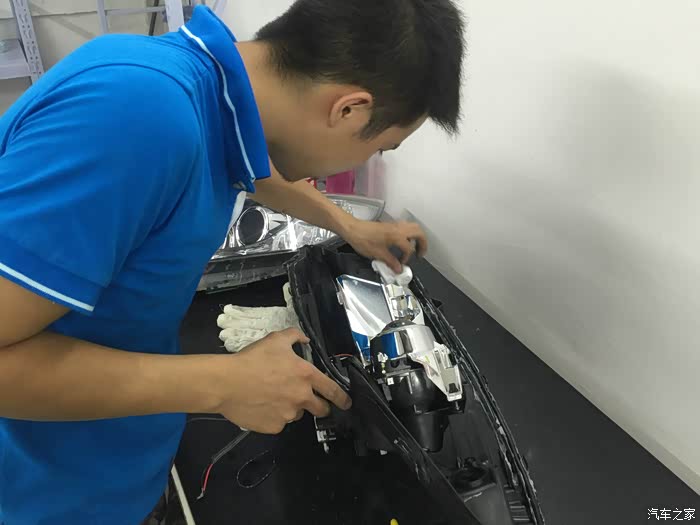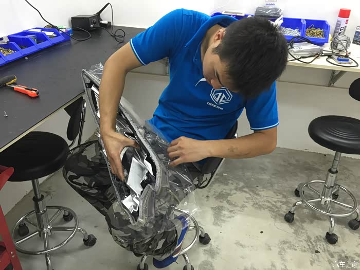 上了个厕所 回来灯都装好一个了,右边大灯也开始在调试了。