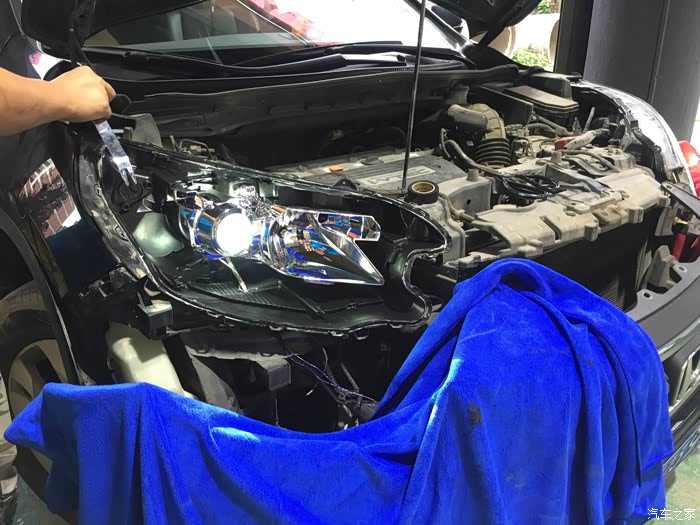 之前呢夜路跑的也不怎么多,蜡烛灯光还凑合。由于公司目前的业务变动,就安排我开始跑周边的城市出差洽谈业务了,晚上跑高速路上压根就看不见 蛮危险的!我估计现在很多这个价位的车,灯光都不会亮到哪里去。出于出行安全的考虑,最终还是想把灯光整亮一点就给改了。经朋友介绍去了一家改灯店. 那天抽空就过去了解了解改灯的常识及价格. 老板介绍的还是蛮专业,之后价格也谈了.差不多在我预算的范围之内 ,然后就开始拆车了。第一次上论坛发帖,文采不好望各位理解