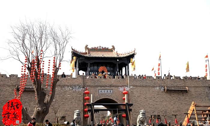进入古城后,首先有老县衙、地牢,县衙按旧时布置,古朴而不失威严,不时有升堂及审案表演。县衙过后看到的是一个水景大广场,中间为天坛式建筑,分上下两层,下面为茶楼的操作间,二楼和外面的广场是游客喝茶休息的地方,布置古朴坐凳百余组,铜壶,老风箱、老茶艺人等古朴人文景观为古镇增添几分亮色,广场周围流水潺潺,水车响动。再往前走,映入眼帘为一条古街,里面古朴典雅,武士、将军、书生、秀才等古人物街中穿梭,让人流连忘返。古街上铺面鳞次栉比,有绸缎庄、铁匠铺、当铺以及各种小吃、作坊。