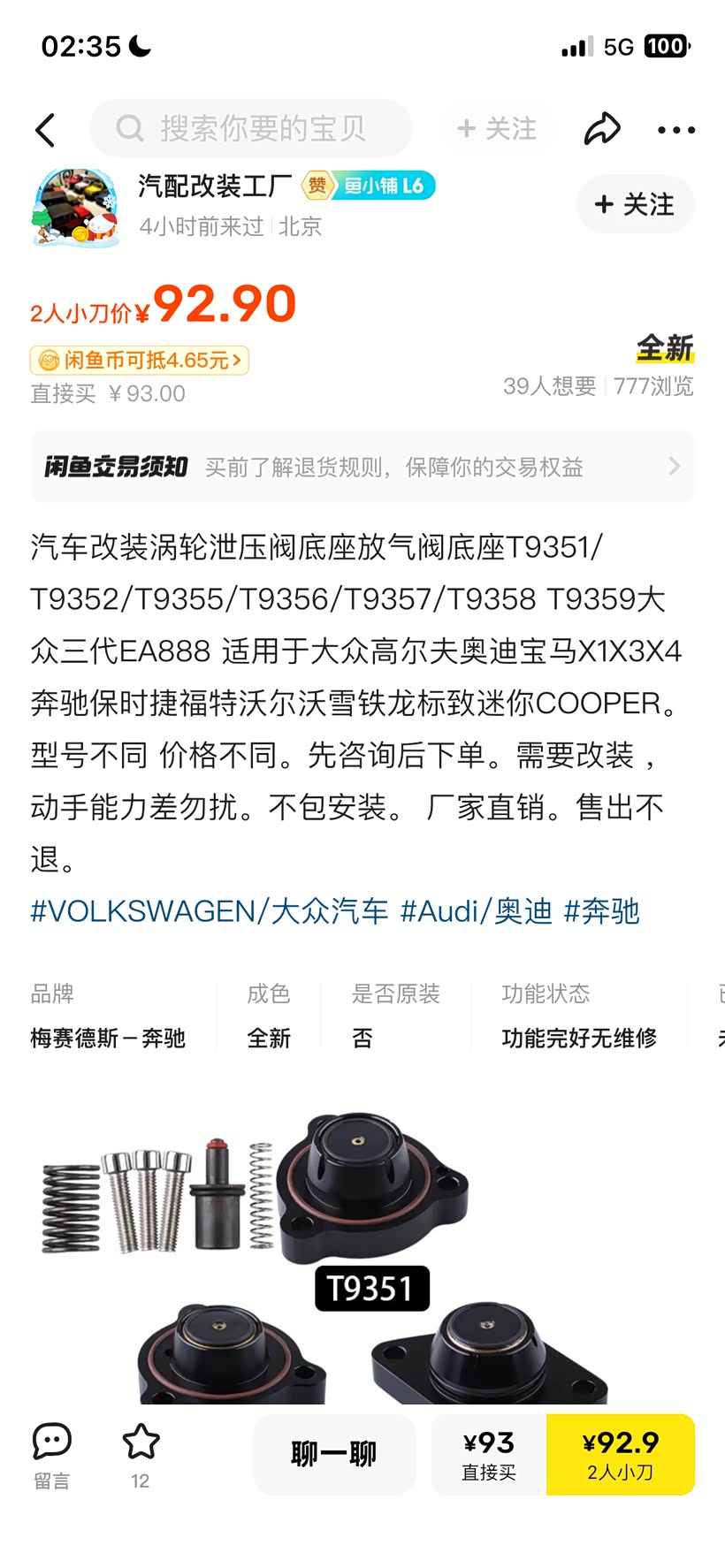 很久之前我就了解到这个东西,一直都想试试,这次看价格很便宜了,值得一试,打不打智商也就103块钱嘛,收到货回家就迫不及待的装上了,卧槽,这个感觉我爱了,真的是扭矩变大了发力提前的感觉,我不知道是不是原车泄压阀设计问题还是怎么回事哈,我仔细琢磨这玩意儿就是把泄压阀口子顶的更紧,涡轮压力越大顶的越近,不会因为涡轮压力大而把阀体顶开漏气,有的用过的车友说用一段时间就会恢复原来的动力,我在想,这个东西如果以后会恢复的话,那可能就是发动机电脑自适应学习了新的工作条件,而针对原厂数据做出的调整,不然就是车主开久了感觉麻脾了,下面上图