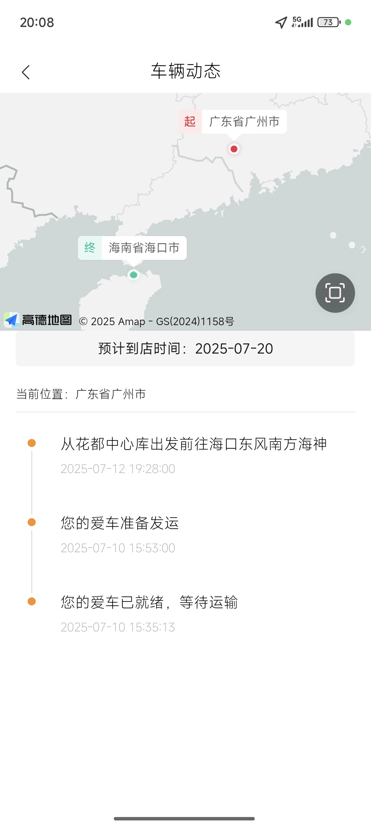 然后7月12日发出,最终7月17日接到通知车马上到达港口,下午直接付尾款,傍晚就从广东坐车出发,7月18日早上7点到达湛江海安新港,8点上船,10点到达海南海口秀英港,打车到专营店,终于看到了我等待已久的车子。