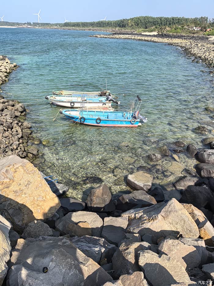 两个小时后,我们抵达了此行的第一站——儋州。放下行李,我们迫不及待地奔向海边。不同于三亚的热闹喧嚣,儋州的海滩多了一份宁静与质朴。海浪轻轻拍打着沙滩,远处几艘渔船点缀在海天之间,构成了一幅绝美的渔村画卷。