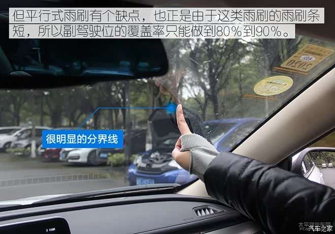 而平行式雨刷的缺点,也正是由于副驾驶位雨刷短小,所以在刮水时,副驾驶位的右上角则比较容易出现盲区。