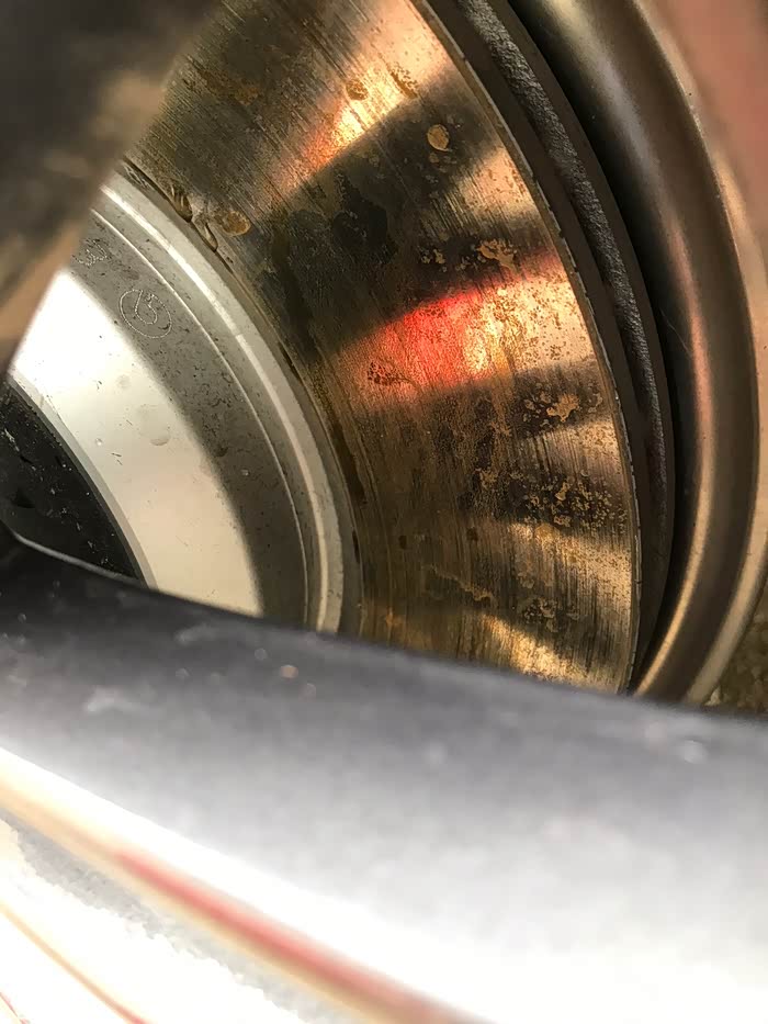 刹车盘的材质大多为铸铁材质,当遇上潮湿阴雨天气时,加上长期的风吹日晒,如果车辆长时间停放,其表面很自然的就会生成一些锈迹,而这些锈迹或多或少都会影响刹车系统的正常工作,所以,我们有必要处理掉刹车盘上面的锈迹。1假如只是表面有轻微的锈迹,那可以采用行驶时连续制动的方法将其清除,行驶中,轻踩刹车,让刹车片与刹车盘的摩擦力将表面“抛光”即可。