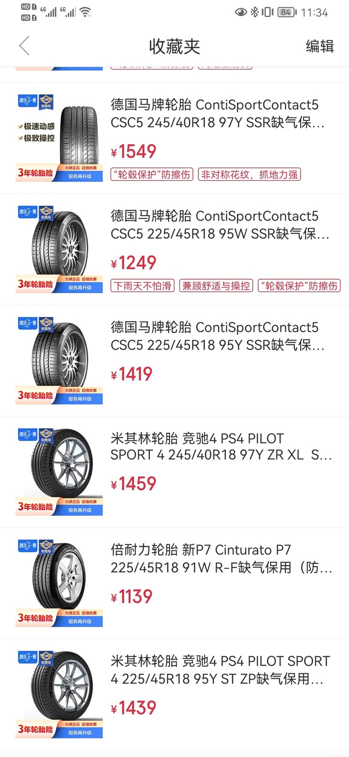 下面是购物车里的轮胎,还是倾向于四个原厂规格的PS4吧,但是后轮确实非常想改成245/40
