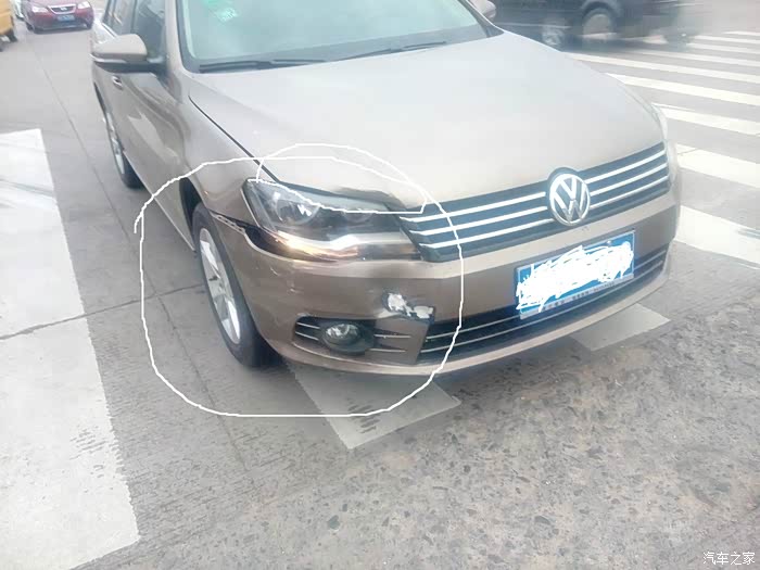 火大,直行都快过路口了,确被一辆左转车的后轮和后车门给撞了。对方轮胎有磨损,轮廓也有磨损,车门有点凹进去。我的宝来前大灯罩和保险杠算是毁了,引擎盖边角有部分凹进去了,汽修厂的说引擎盖原厂的好,不要换,修复一下就好了,然后下面保险杆那里怎么算有泡沫的,