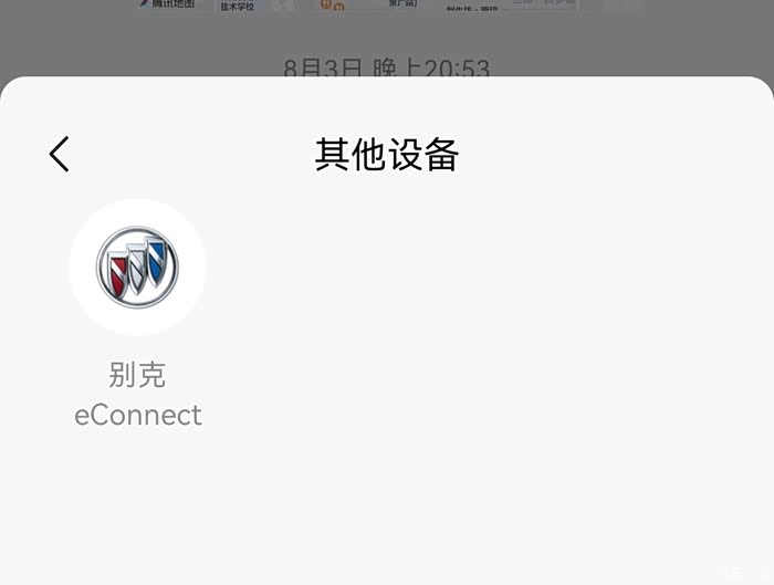 再如图,手机,车载高德已登录同一账号,正常应该可以微信中位置直接发送到车机开始导航,手机微信里也找到了别克,但发送到车机不成功