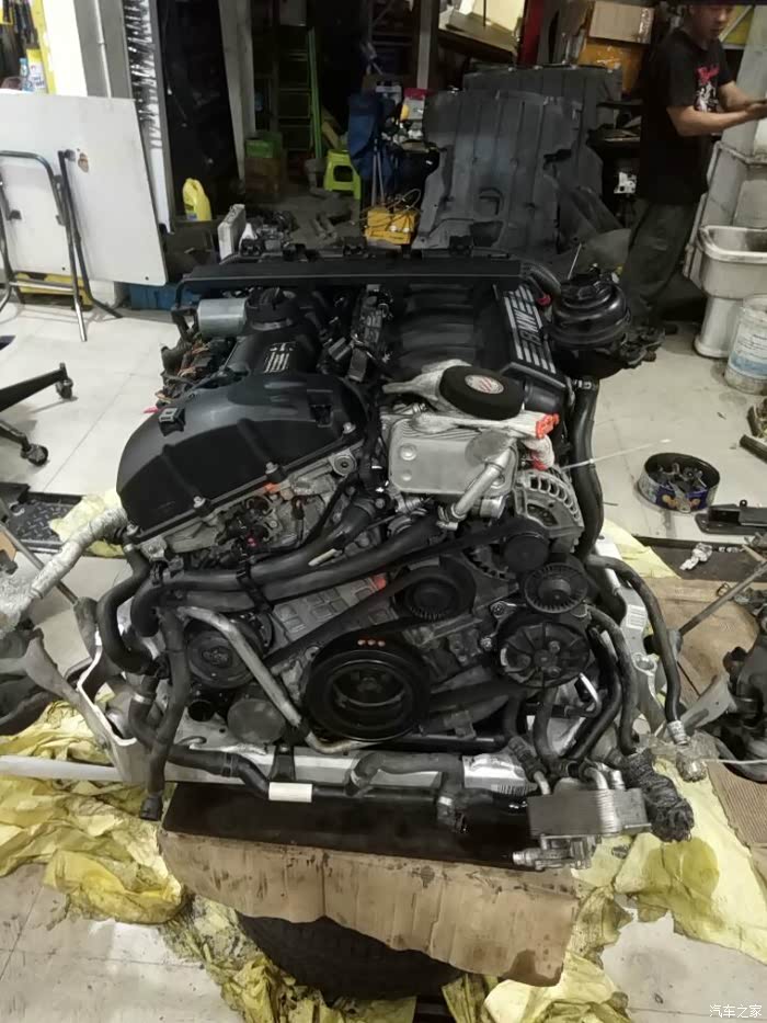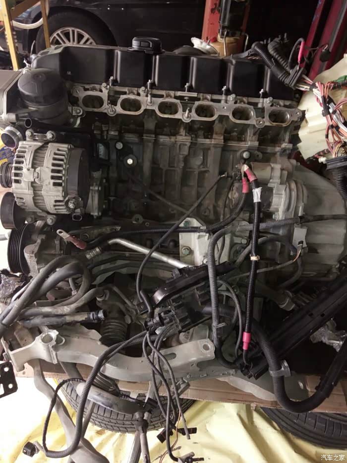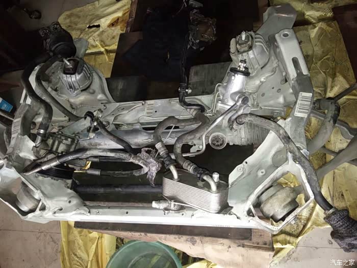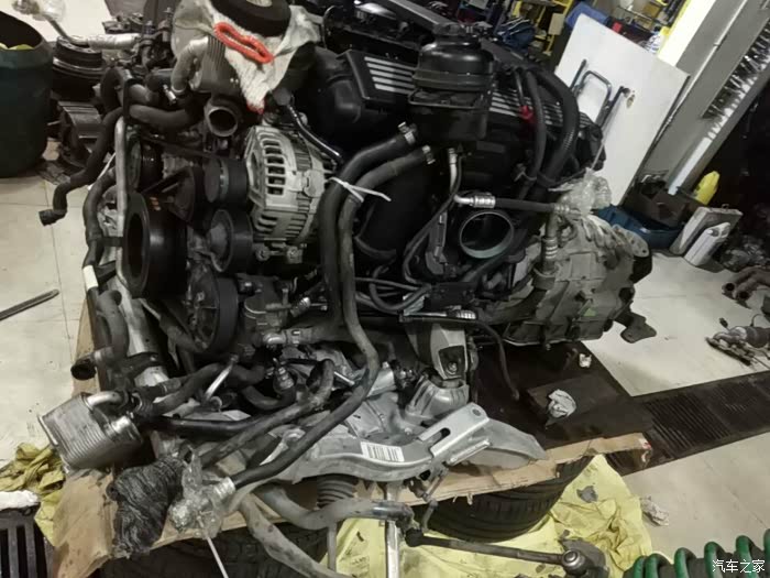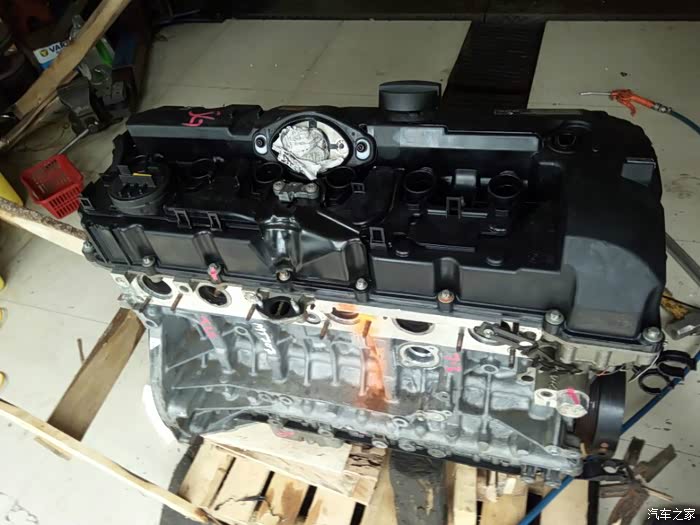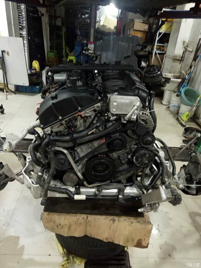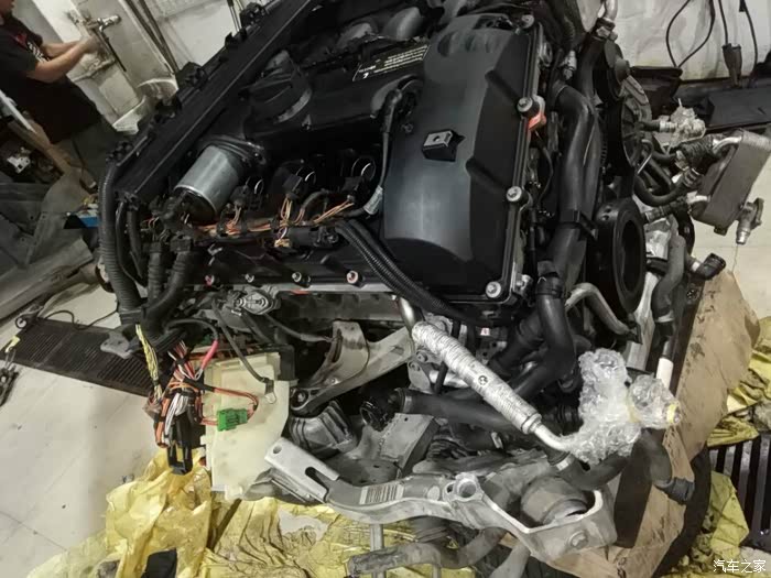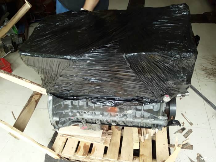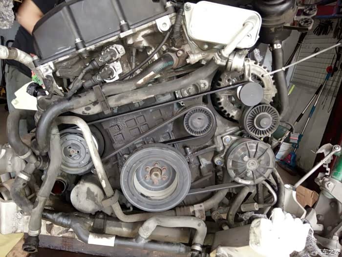 接下来开始移植发动机上的零部件,进气,排气,空调泵,助力泵,水泵,还有各种水管以及线束都要移植到新的拆车发动机上