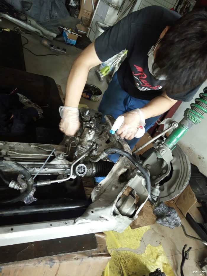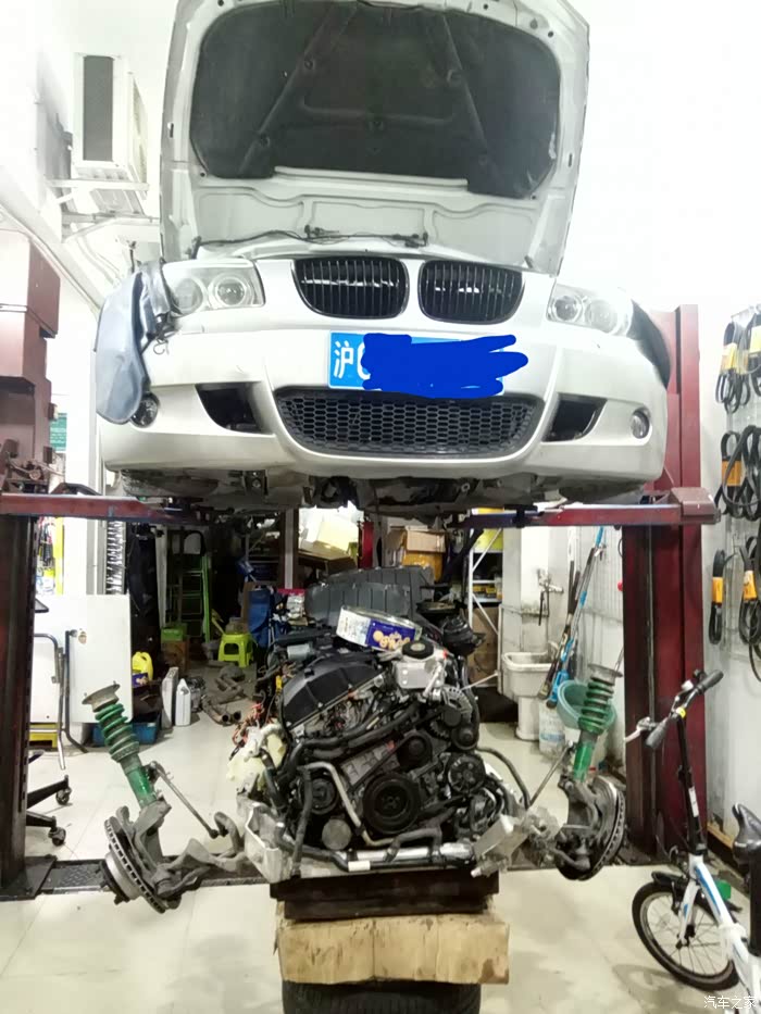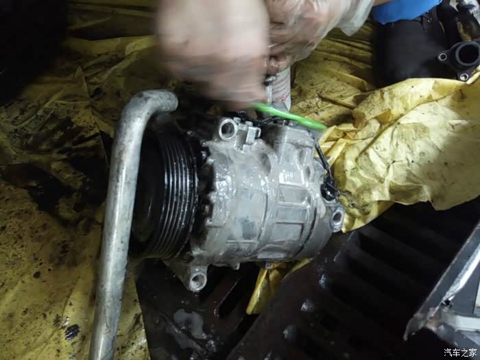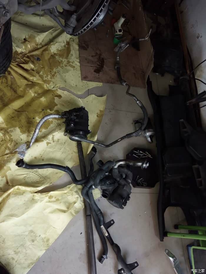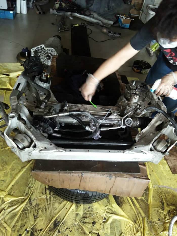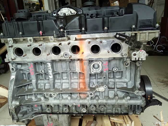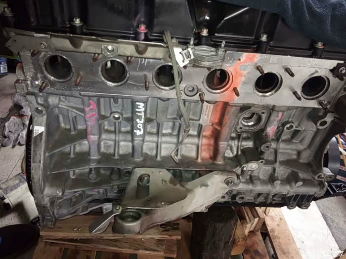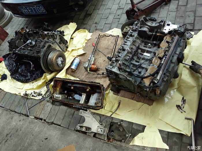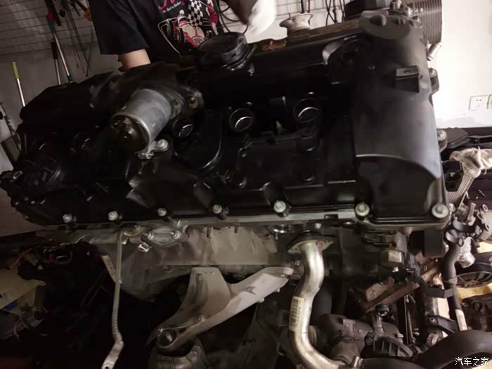 接下来开始移植发动机上的零部件,进气,排气,空调泵,助力泵,水泵,还有各种水管以及线束都要移植到新的拆车发动机上
