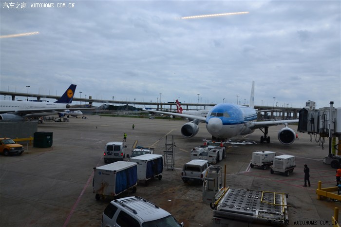 左边的是非德国法兰克福的汉莎航班波音747-400,蓝色的是飞荷兰阿姆斯特丹的KLM波音777-200,后面是刚从澳大利亚悉尼飞来的Quantas 波音747-400