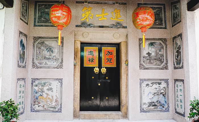 村口有一“进士第”,门墙上的壁画都是关于“忠孝仁义”的故事,细看定会有一番觉悟。