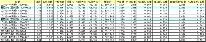收集到了普拉多、帕杰罗、现款劲畅、新款劲畅(澳洲/泰国发布)的各档齿比和4L放大比,按照4H模式和4L模式下传递到车轴的扭矩/车重,排列了各款车型在1档下的动力指标极限值。