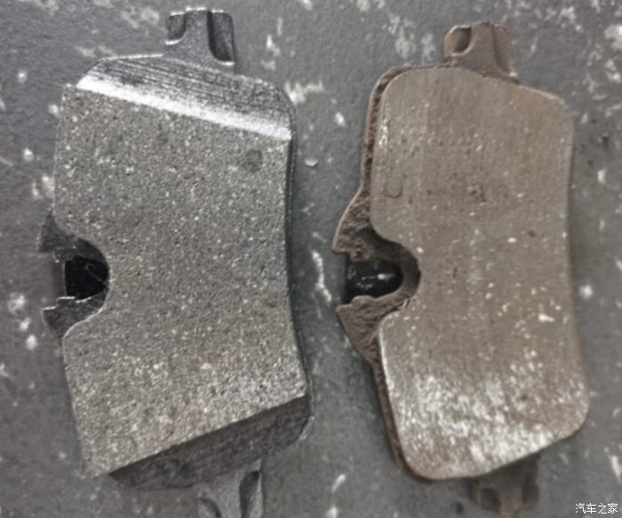 半金属刹车片:优点是制动性能强,价格较低。缺点是噪音较大、磨损速度较快、制动灰尘较多。