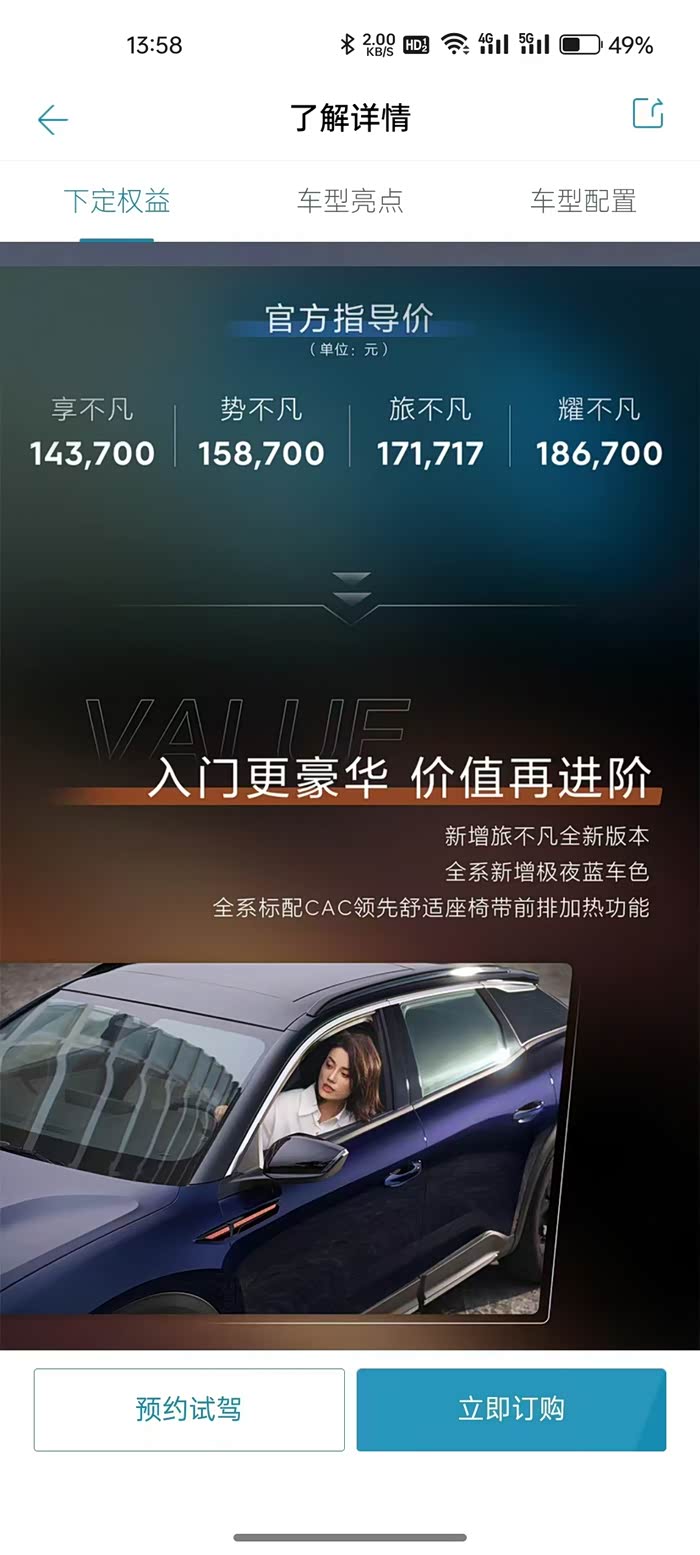 2、置换考虑:看凡尔赛这款车已经很久了,说实话,刚开始是很喜欢的,都有要买的冲动,但是由于已经有一辆车在用,去年就没考虑置换,现在有意愿去置换一台车,这样2个人可以一人一辆车出行使用。现在看凡尔赛还可以,但是也没之前那么冲动,比较还是手头紧,消费欲望一年比一年低了。