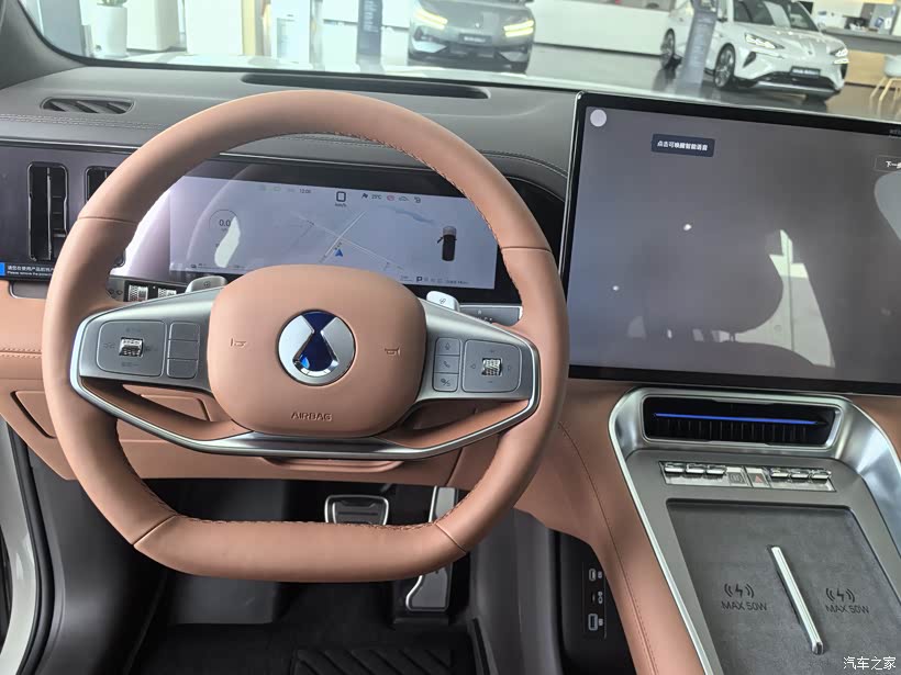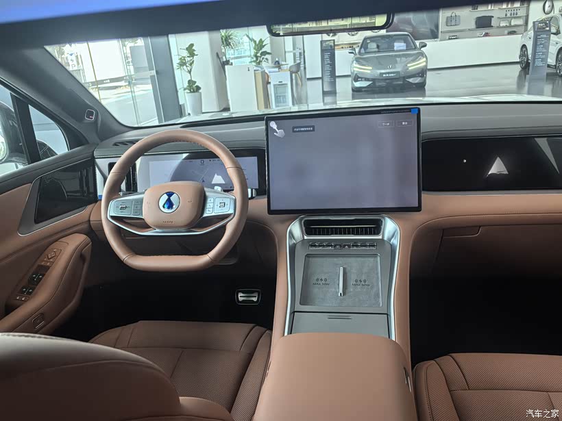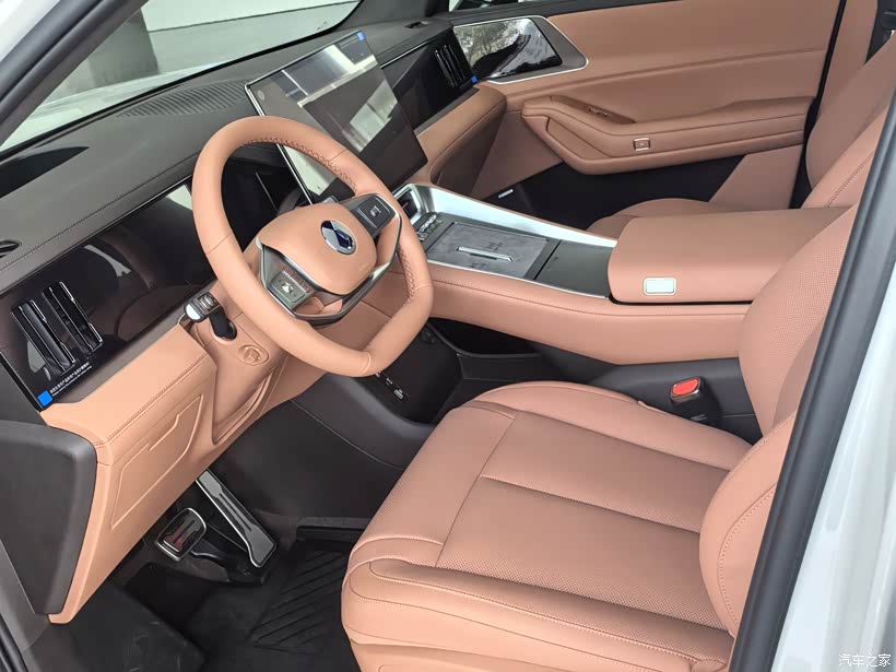 一、这大家伙居然挺秀气。进店第一眼看到实车,5米2的长度确实有压迫感,但设计上倒没觉得笨重。销售特意给我演示了电动侧踏,家里有老人小孩的,这配置确实实用,不用弯腰踩踏板,细节上挺加分。销售经理说,这款车只有2个版本: 尊荣型和旗舰型,价格在29.98万﹣32.98万元区间。试驾车是旗舰型。坐进驾驶位,视野开阔。内饰用了不少软皮包裹,摸着手感不错,新车也没啥刺鼻味道,这点值得点赞。配备17.3英寸中控屏,搭配13.2英寸副驾屏和50英寸AR-HUD,支持多屏联动。我第一反应是这不就是个巨幅iPad吗。操作流畅度还行,但我专门试了下语音,让它打开座椅加热,反应稍微有点慢,识别倒是挺准。