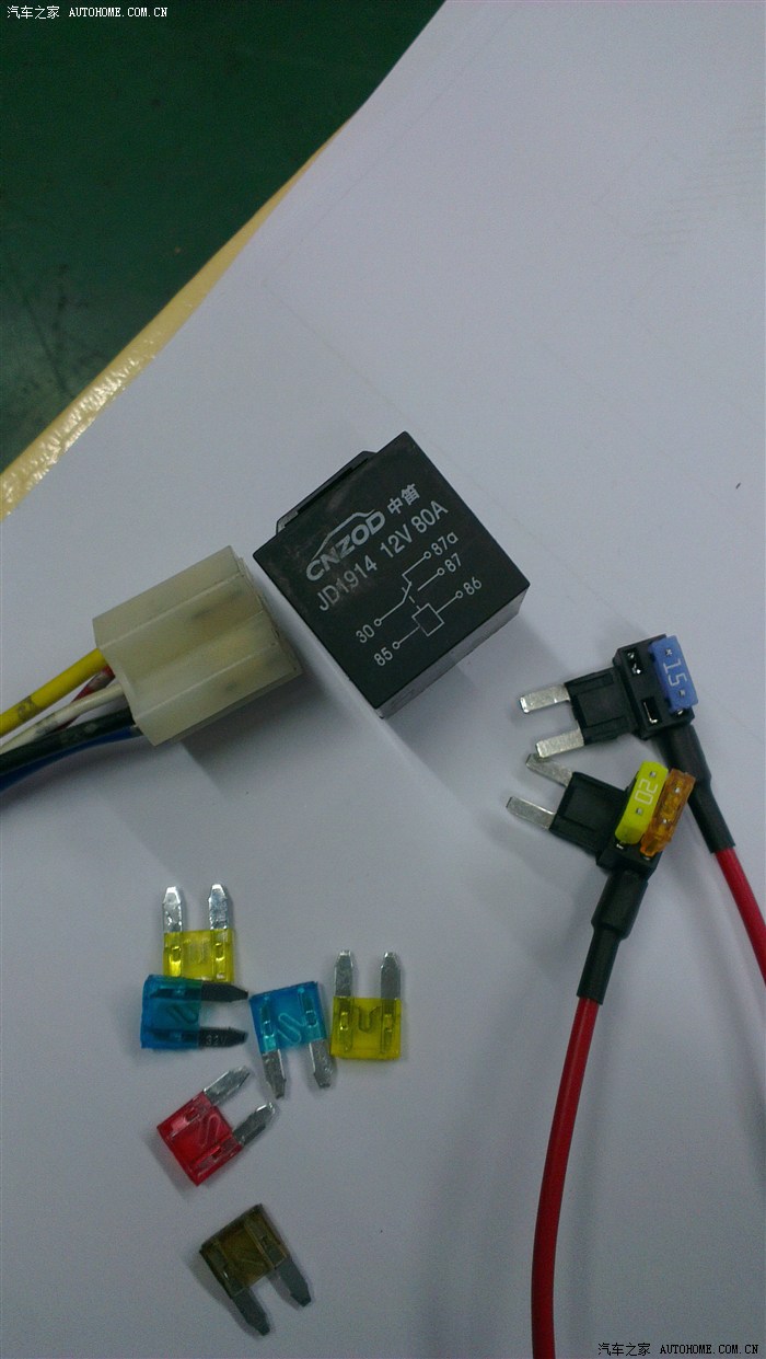 为了安全起见,原来的保险丝继续使用,再给继电器加一个保险丝,使之更加安全。