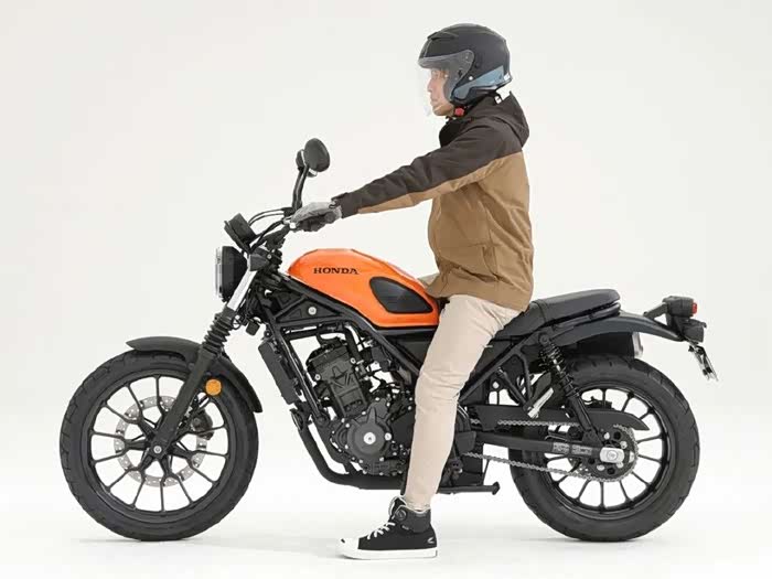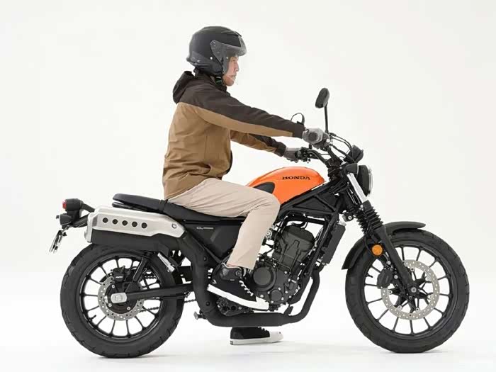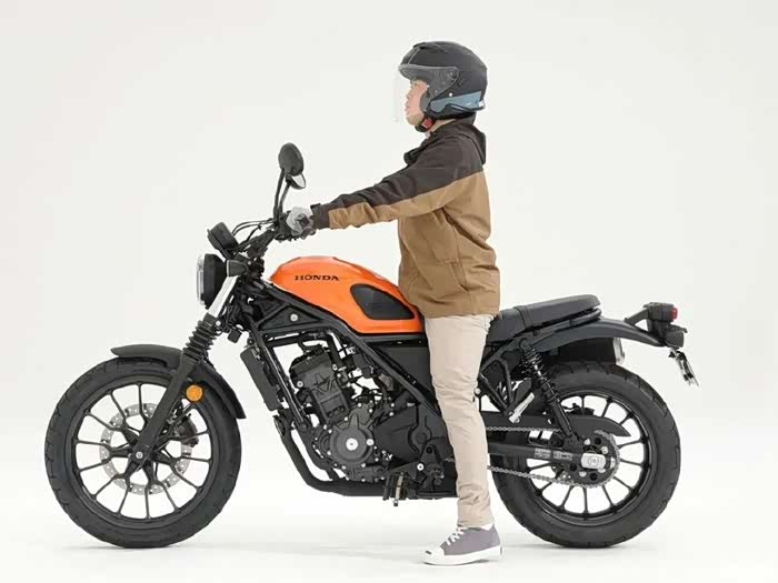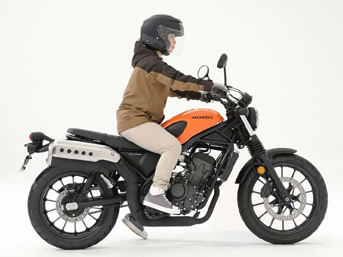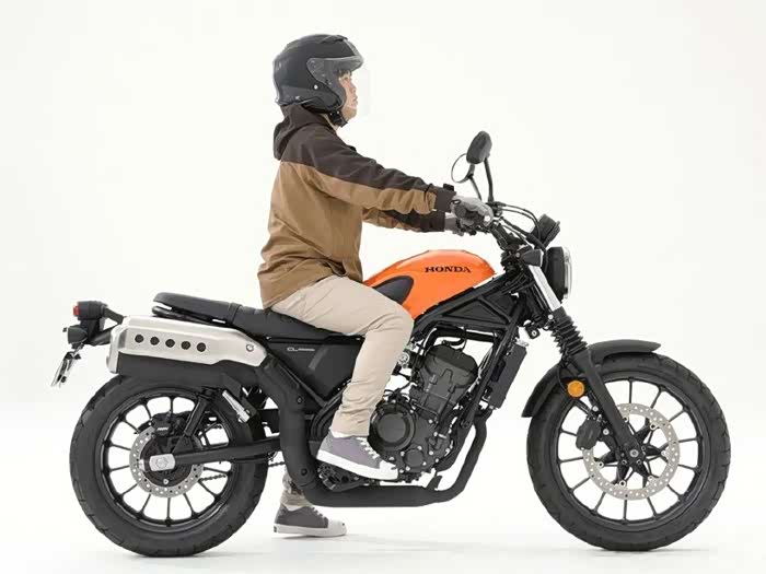 175cm男骑士驾驶坐高为790mm的本田CL300,双脚掌可以轻松着地,单侧支撑也是游刃有余。175cm骑着这样一台小排量的CL300也不会像骑狗。