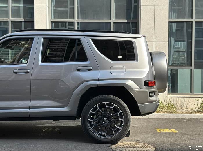 方正的轮廓与棱角分明的线条相互映衬,外扩式轮眉设计也蛮独特的,再加上多辐镂空双色轮毂、侧开尾门、背挂式备胎……让坦克700Hi4-T粗犷硬派的造型更加的出彩。