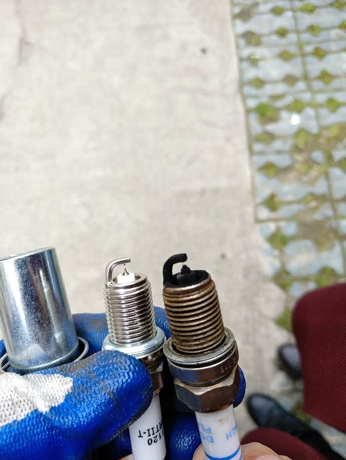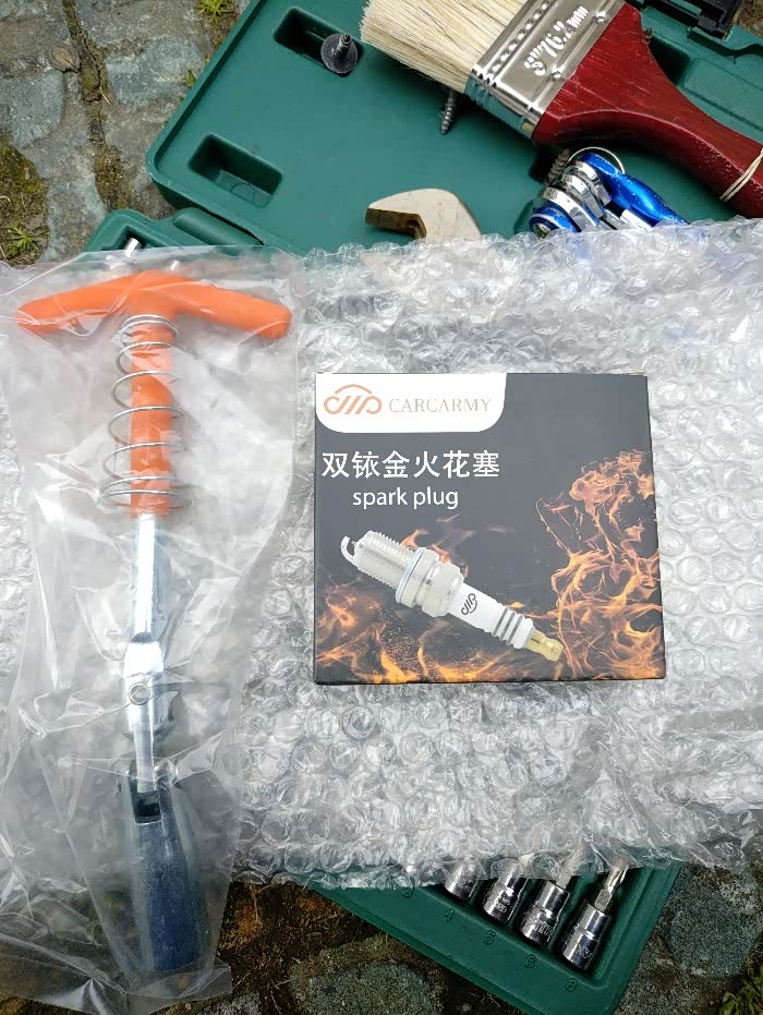 3.先拔掉点火线圈插头,左右拧动点火线圈拔出来,使用赠送的套筒拆除旧的火花塞,安装新的火花塞,很简单哦,拧紧。