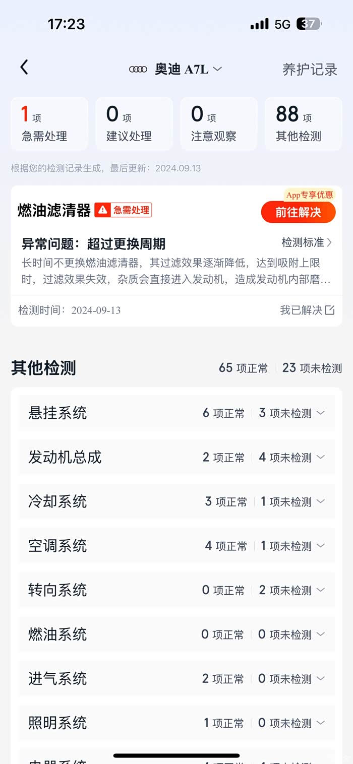 因为平时也忙,没空去4S,进去了没3小时都出不来,所以就家附近随便弄弄了,很多人担心外部修理厂会影响保修,其实并不会,只要正规的修理厂,只要有记录,都是可以正常质保的,这点大家可以放心,燃油车麽,怎么方便怎么来。小保养是保险送的,步骤也很简单,某平台APP预约,然后再加购空滤和空调滤,一次小保养就全做掉了。