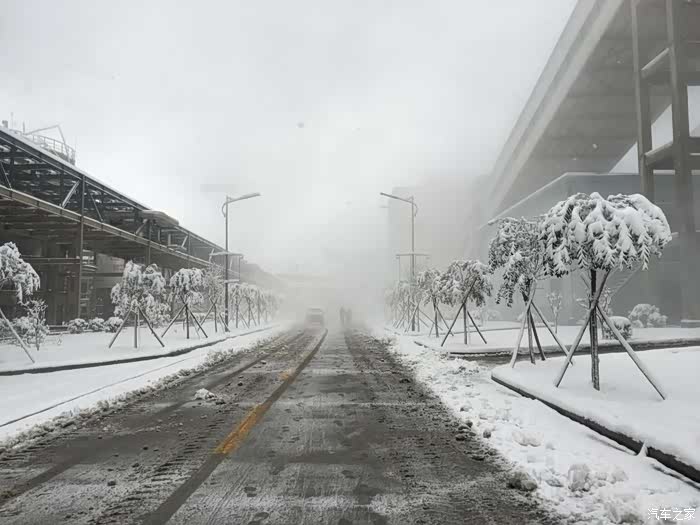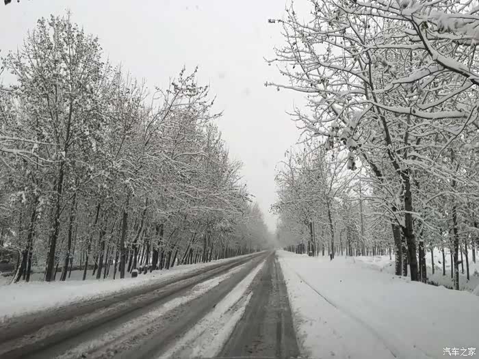我在厂里上班,厂在郊区,离家7点几公里,由于下了大雪,路上车辆很少,特别是出城之后,路上基本没什么人。虽然开了雪地模式,但我的速度还是控制在40km/h,雪天开车安全第一嘛!