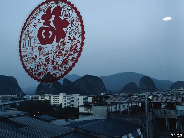 住的酒店,福字贴下的桂林山水
