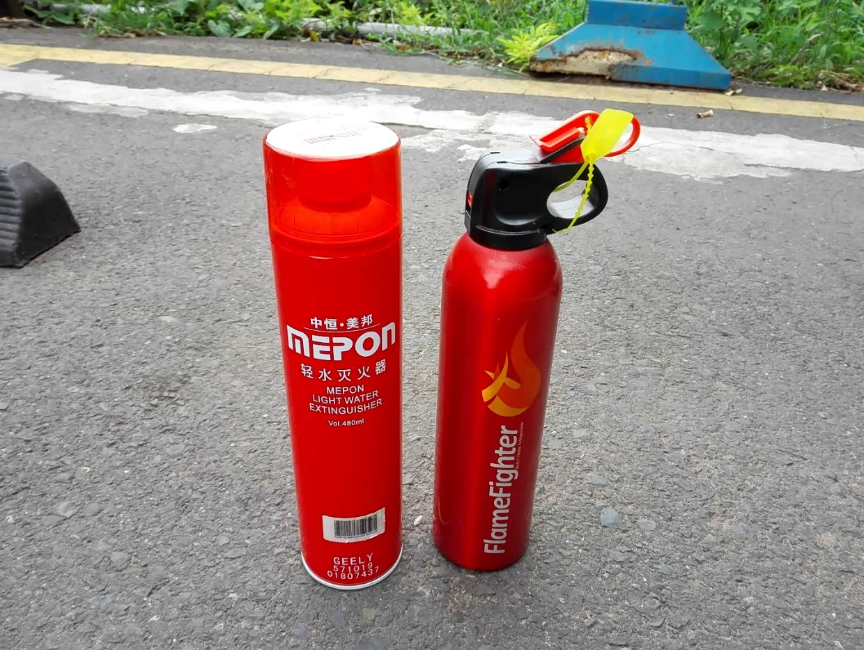 原车自带灭火器、专门的支架和安装位。当然每3年更新一下灭火器才行。