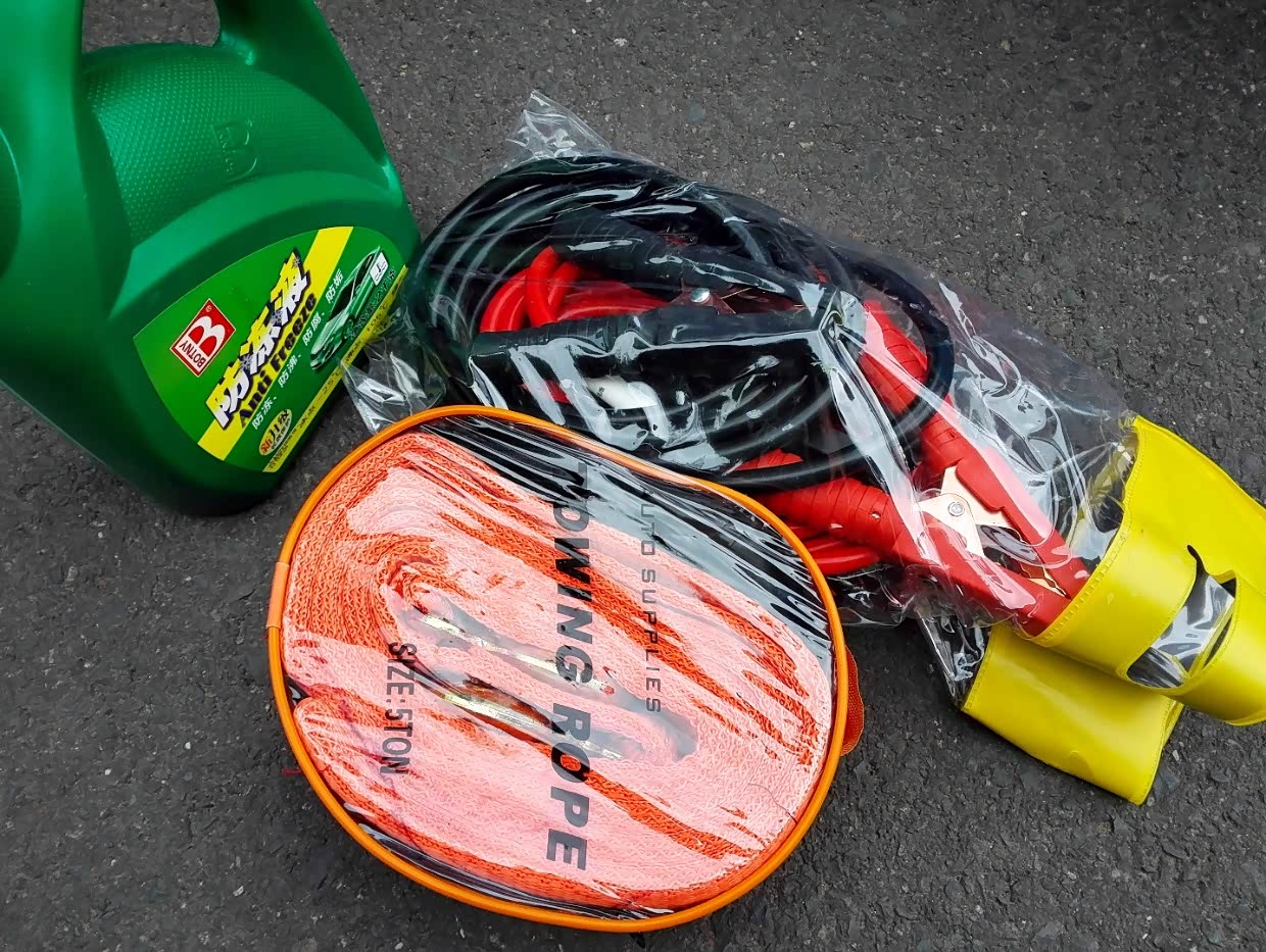 那时候不知道模型锂电池可以启动车子,也不知道有启动宝这东西,所以买了搭电线,还有拖车绳,一次没用上。