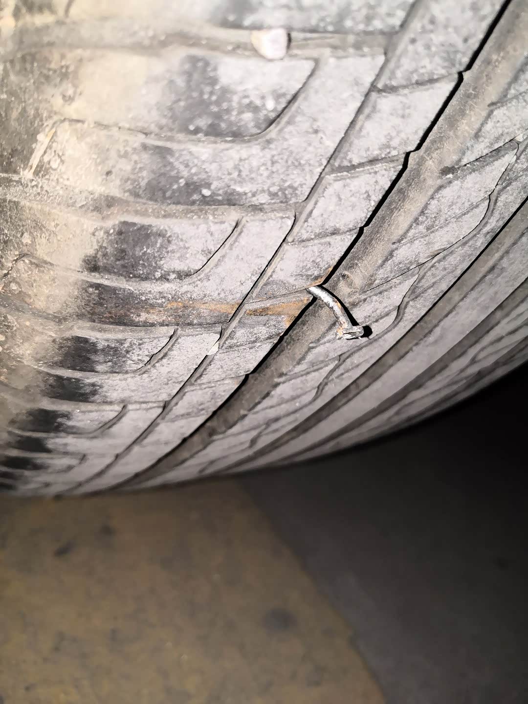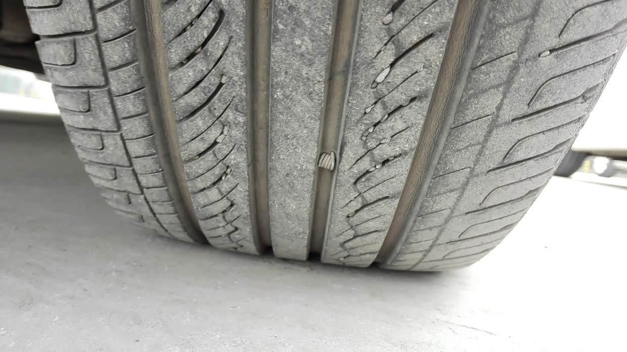 刚换新胎不久,角铁就给我安排上了。还好装了胎压监测,漏气马上报警,漏完之前停车了,没有压坏轮胎。