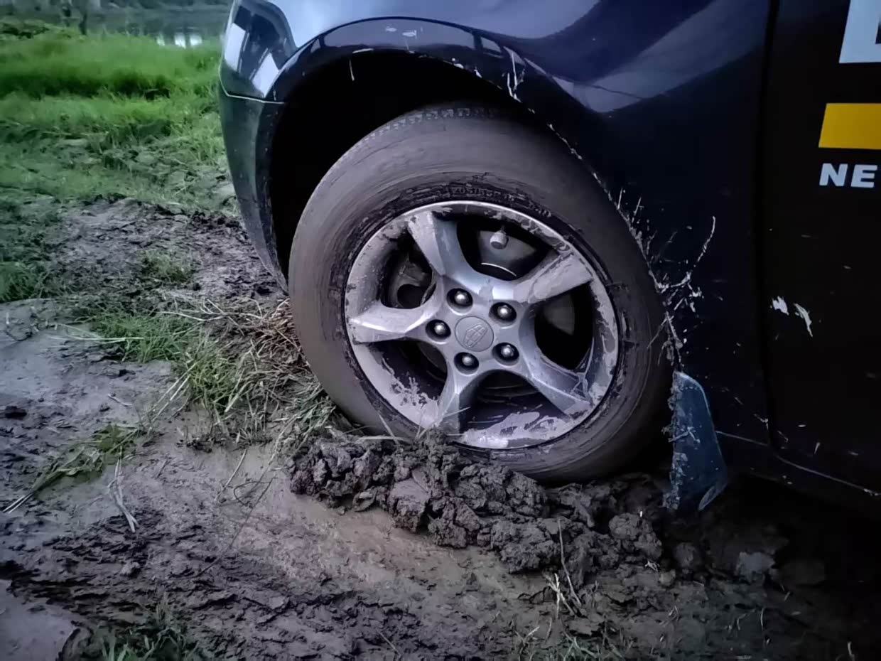 公路胎伤不起,稍微一点泥泞就没抓地力了。