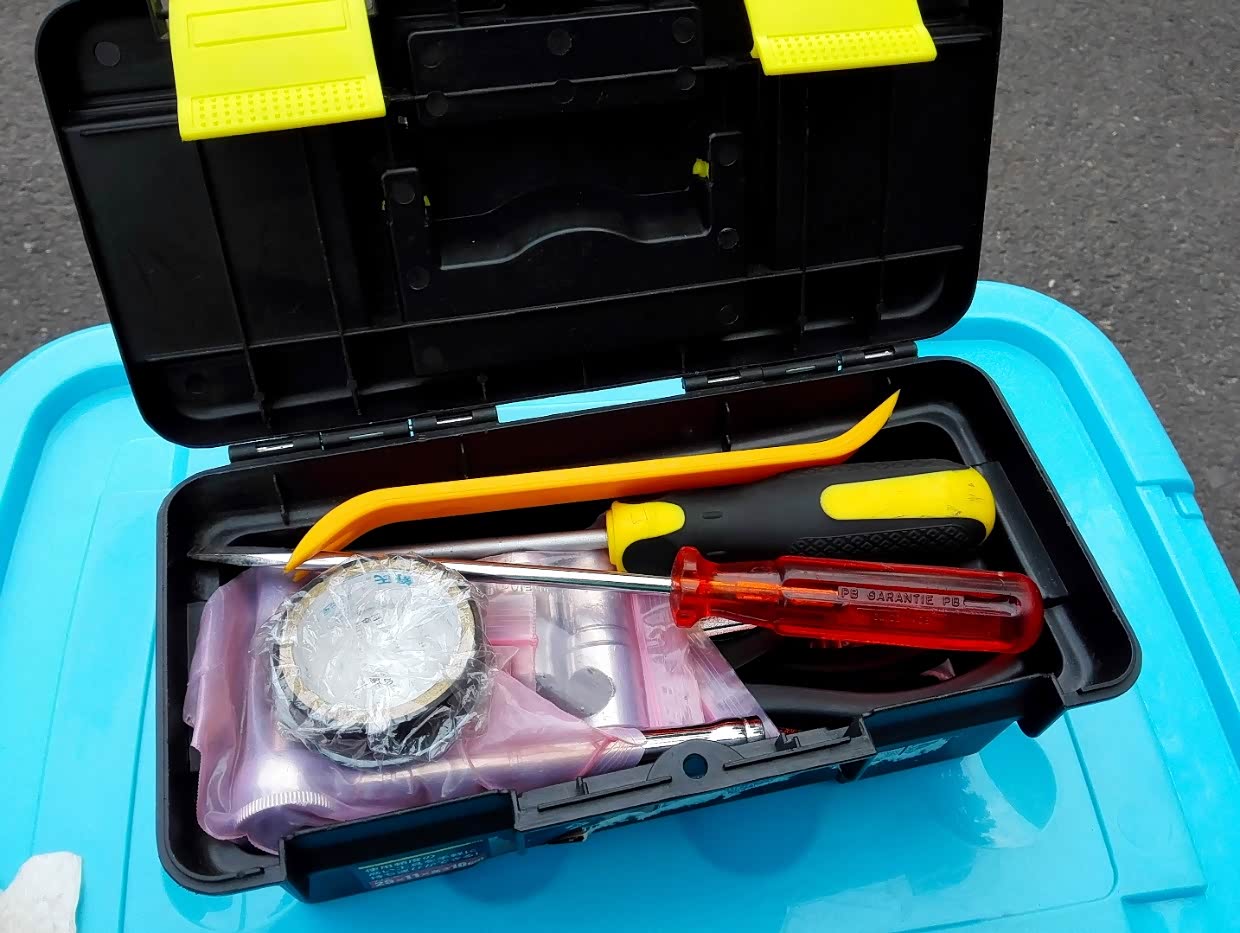 补胎工具也必须要有。