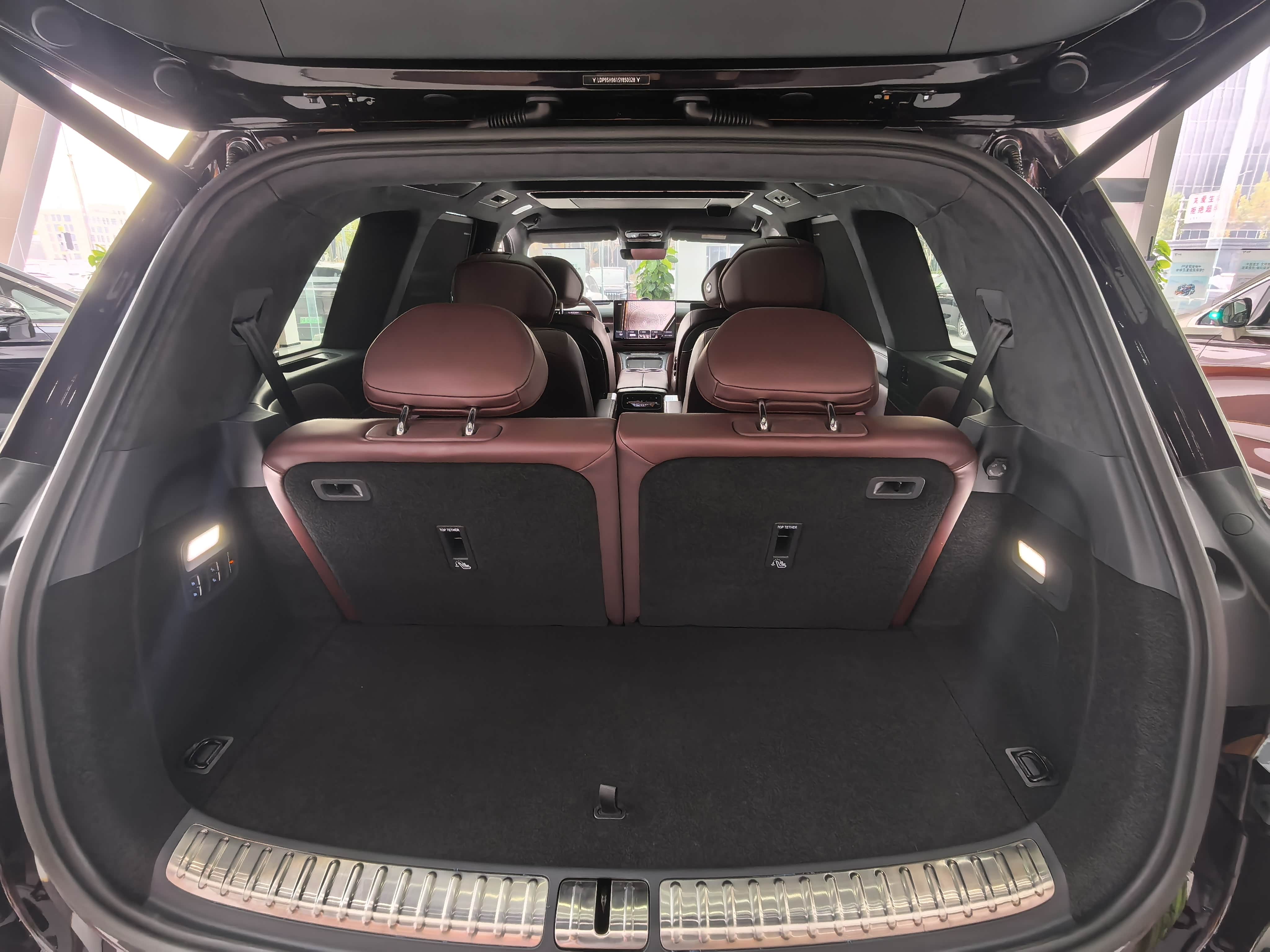 车身侧面的流光门把手和电动踏板光幕,看着就贼显档次。5230mm的车长比梦想家短了大概10公分,但3120mm的轴距摆在这儿,内部空间根本不用愁。再配上22寸大轮毂,整体比例协调又大气。车尾的贯穿式尾灯带山河吊坠设计,点亮效果特有中式韵味。