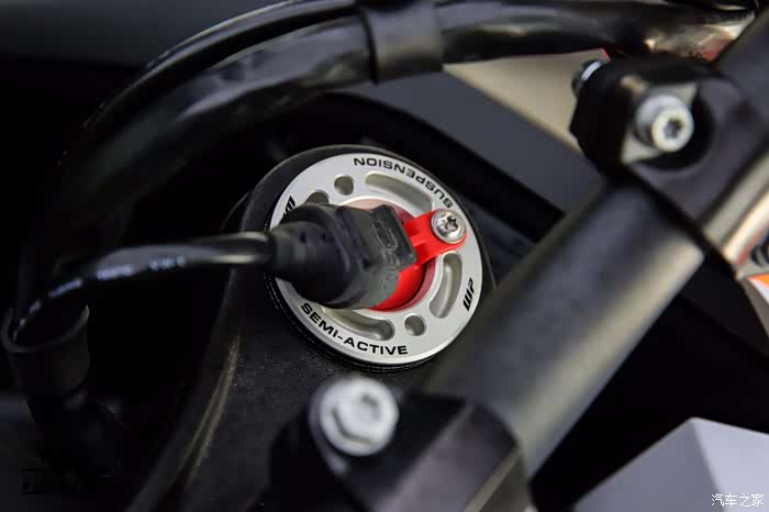 前后避震均采用旗下著名WP品牌半主动式避震器,拥有“舒适”、“街道”、“运动”、“越野”四种模式。并可以通过电控模块对避震器进行每秒高达250次的精确调节,保证每时每刻阻尼、回弹等参数都是最佳设置。后避震器还可对单人双人、是否携带行李进行不同预载调节。