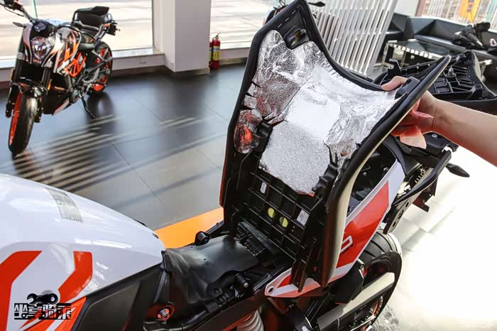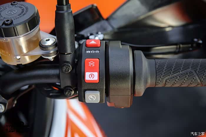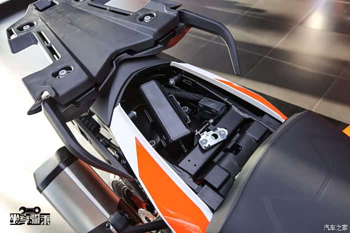 新款1290ADV搭载了无钥匙启动功能,取消了传统钥匙门,通断电、锁闭开启车把锁均由右侧车把控制区下方的灰色按键实现。同时油箱盖也可无钥匙开启,机械钥匙仅用于开启座垫和行李箱。