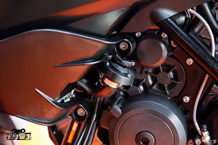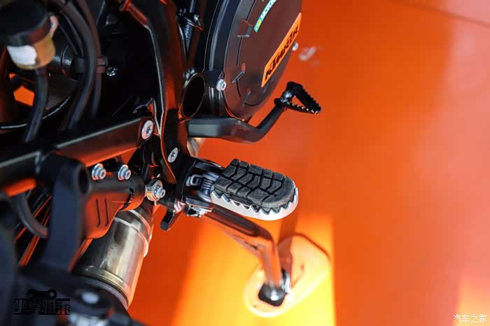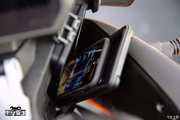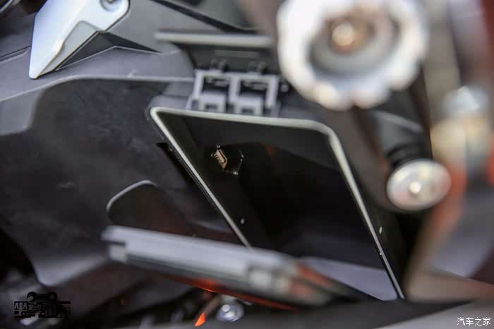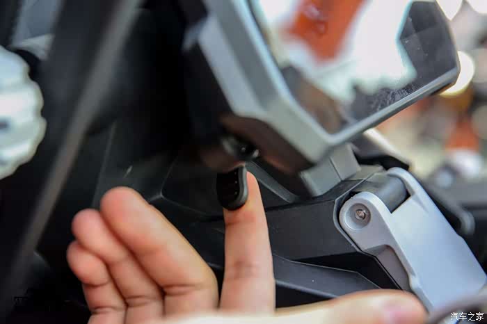 新款1290ADV充分考虑细节,为消除大尺寸液晶屏反光问题,设计了角度可调支架,拨开下方拉杆便可对屏幕角度进行调节,与汽车方向盘调节机构相似。