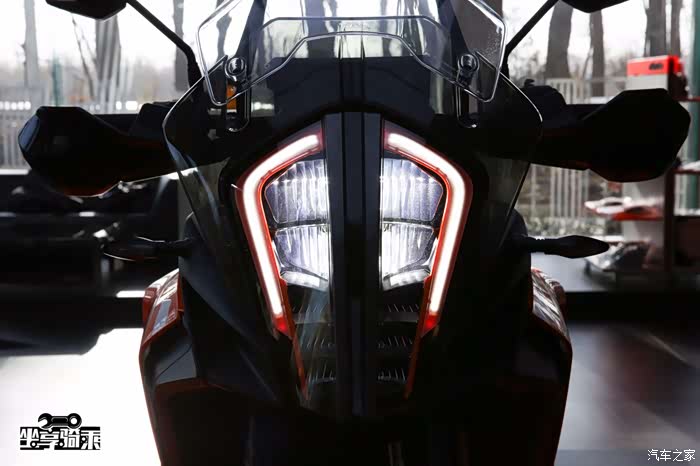 新款1290ADV最具争议的莫过于分裂式头灯造型,KTM宣称最新头灯家族设计语言灵感来源于日本武士面具。审美因人而异,暂且不评判美丑,其功能性还是非常强大的。
