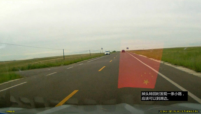 快到锡林浩特市时,在路边看到了锡林九曲的路标,便冒险去看了看,因为当时油量警告灯已经亮了,未敢深入,只看到了一个美丽的小湖。