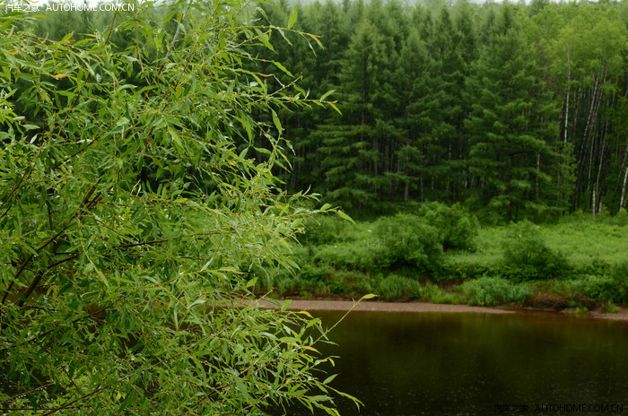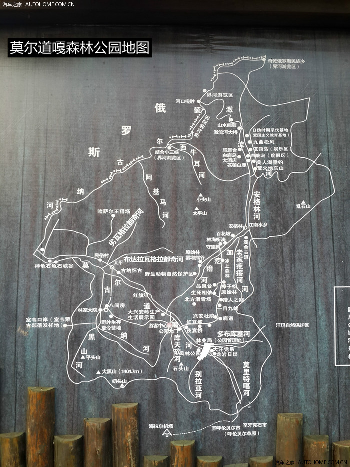 进入莫尔道嘎森林公园大门后,是一段很平整的砂石路,路旁间或有一个可看可不看的景点,我们没有停车,直奔白鹿岛方向而去。